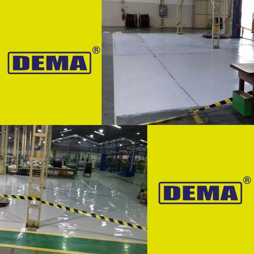 DEMA FLOORING is heavy duty Epoxy Coating for concrete floor. It gives a very high magnitude of adhesion, excellent chemicals and abrasions resistance. Attractive high gloss or semi gloss standart and customized pigmented colors.
